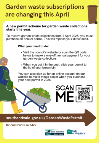- Visit the Vale of White Horse District council’s website here to make a one-off, annual payment for your garden waste collections.