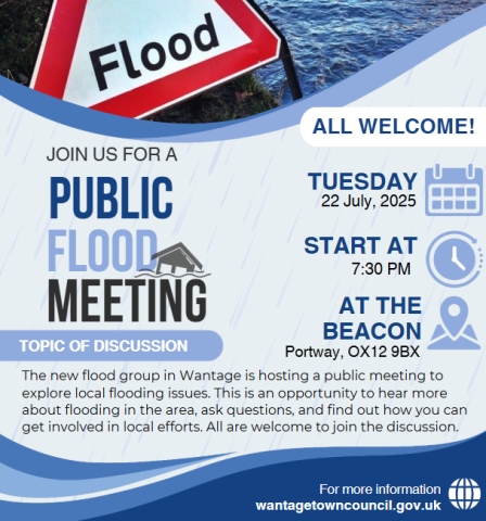 The newly formed Wantage Flood Group is hosting a public meeting to explore and discuss local flooding issues – and everyone is welcome.