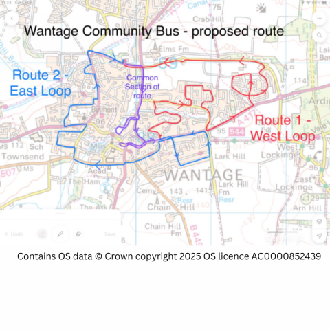 We have recently developed our ideas for the Wantage community bus route which aims to access as many residential areas of the town as are practicable and connect them with the major town facilities. Our proposed route is presented in the map that can be viewed below and consists of two interconnected parts known as Route 1 – East Loop and Route 2 – West Loop. Together these form a figure-of-eight with a common section serving the Mably Way Health Centre, Sainsbury’s, The Market Place and The Community Hospital.